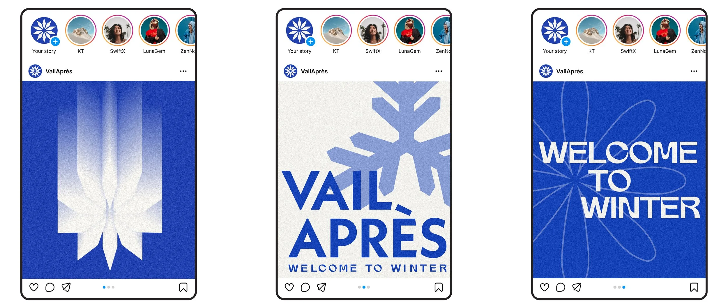 Neue Kabel once again leads the Vail Après wordmark for the winter branding with the tagline changing to reflect the energy that winter brings to the valley. For winter, we captured the community oriented nature of Vail and highlighted how winter brings the town and its visitors together as they celebrate the fresh snowfall and joyful occasions.